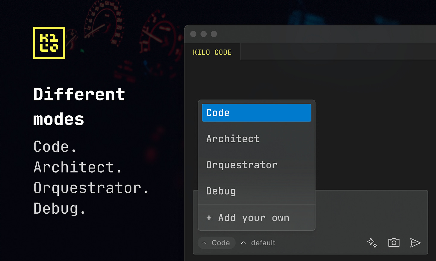 Kilo Code provides an entire team of specialized AI teammates through different modes: