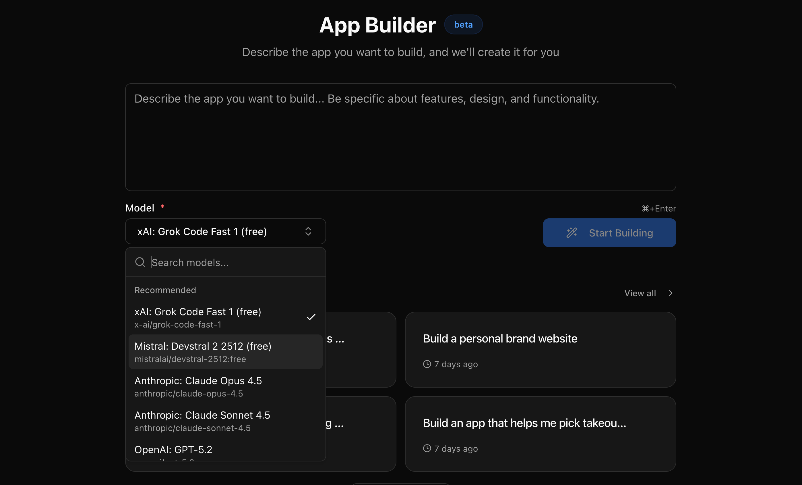 App Builder is live at app.kilo.ai/app-builder. It’s free to start, works with our several free models, and you can deploy your first app in minutes.