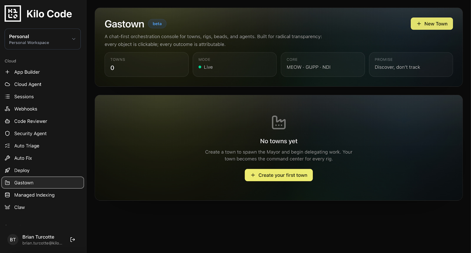 Today we’re announcing Gas Town by Kilo, a fully managed version of Gas Town running on Kilo’s Cloud infrastructure and powered by the Kilo Gateway. We’re opening the beta waitlist now: