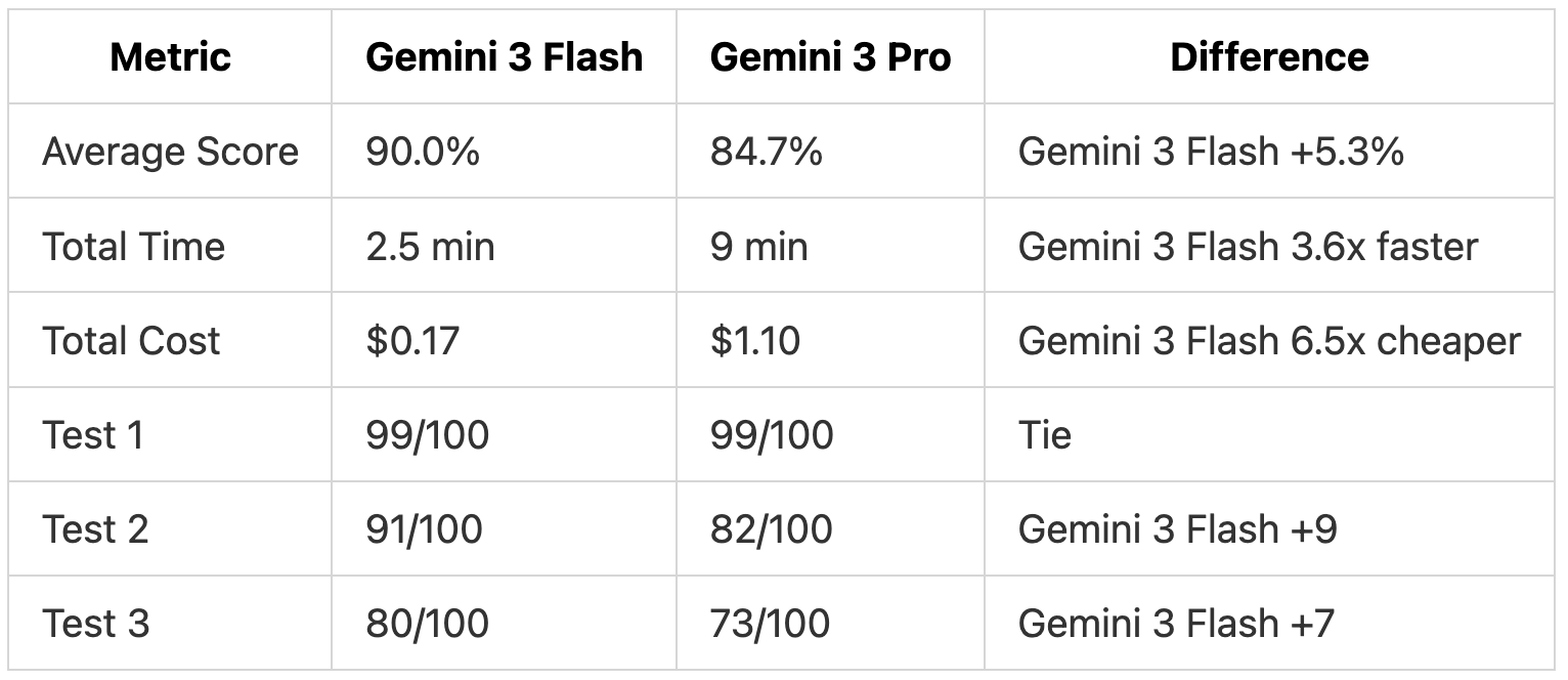 Gemini 3 Flash Outperforms Gemini 3 Pro in Coding Tests