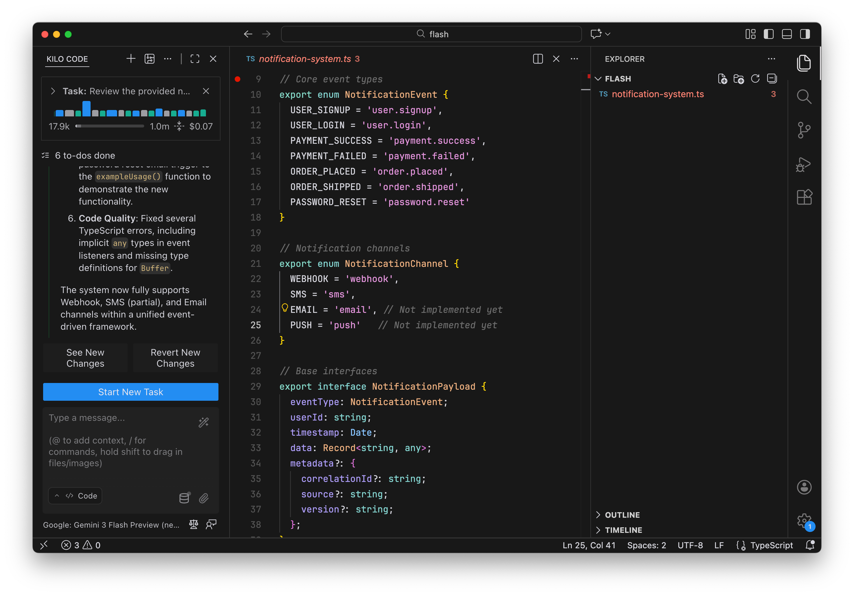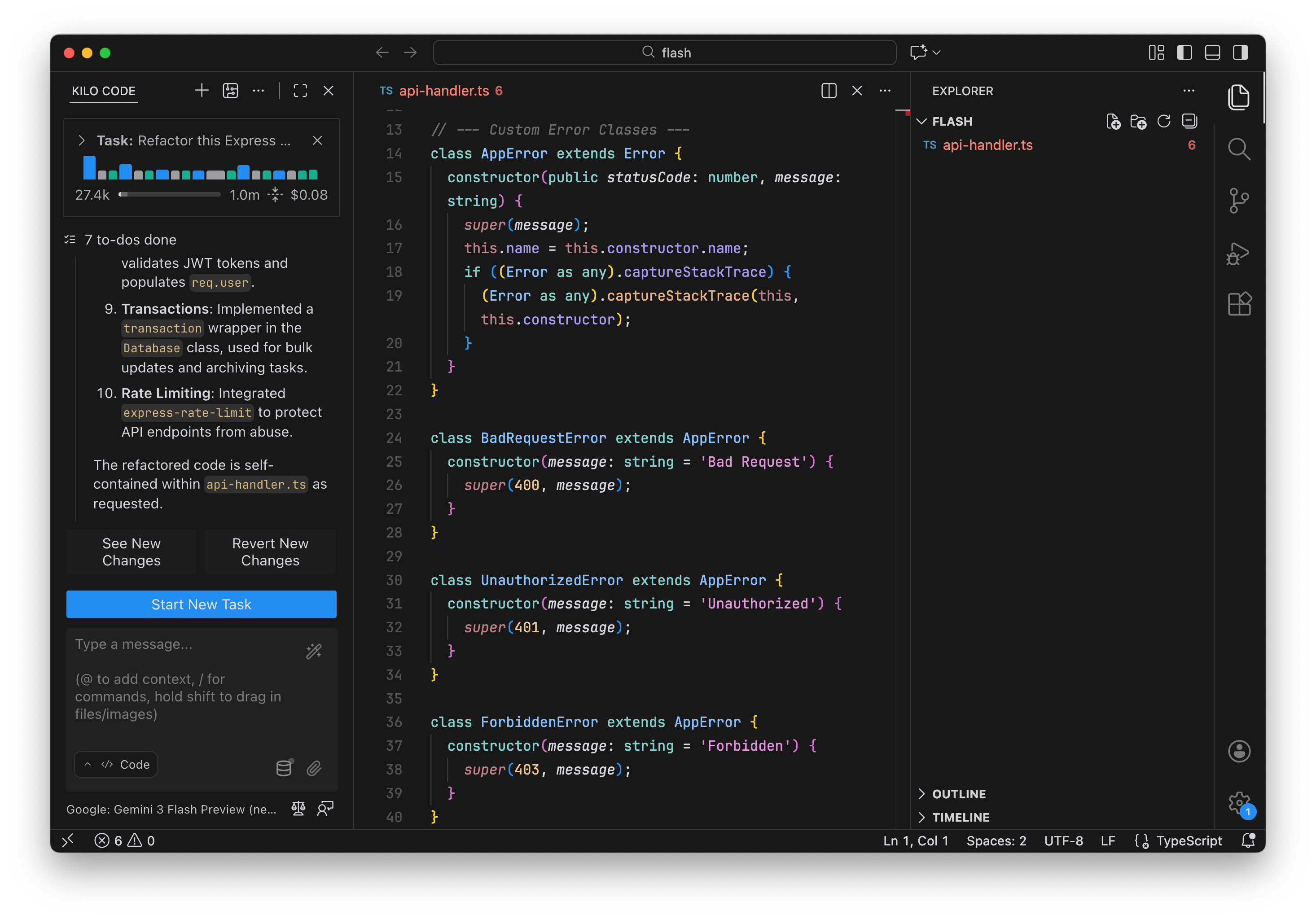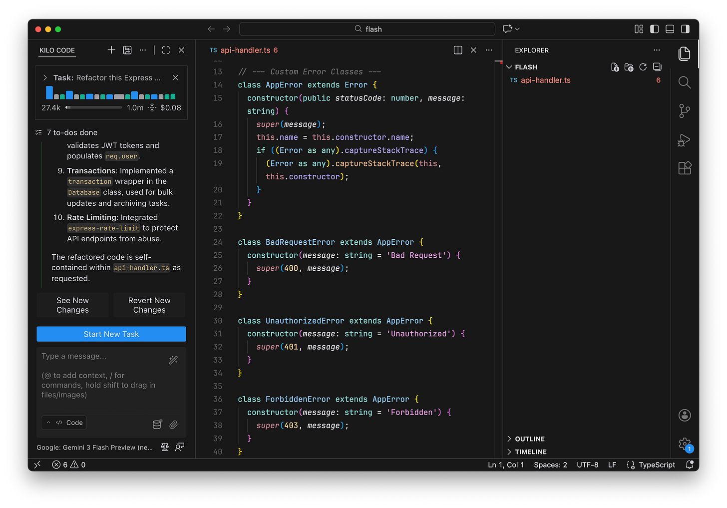 Gemini 3 Flash is now available in Kilo Code. Google released the model this week, positioning it differently from previous Flash variants. Instead of the usual “fast but less capable” tradeoff, Gemini 3 Flash delivers Pro-grade reasoning at Flash-level speed and cost. On SWE-bench Verified, it scored 78%, beating both Gemini 2.5 Pro and Gemini 3 Pro.