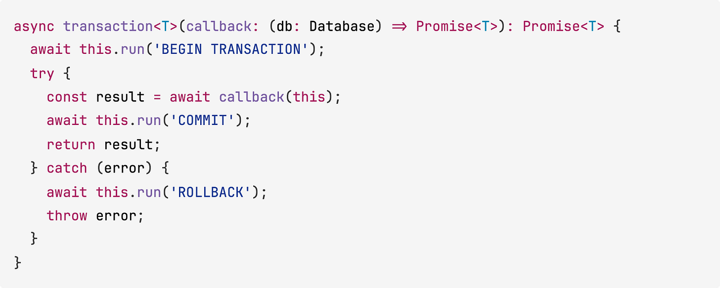 Gemini 3 Flash implemented proper database transactions with BEGIN, COMMIT, and ROLLBACK: