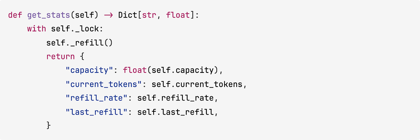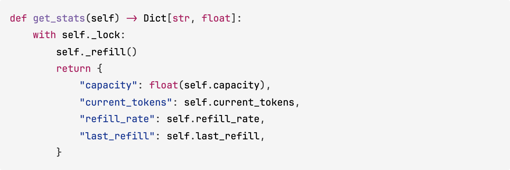 Gemini 3 Flash used public attributes (self.capacity, self.current_tokens) instead of private ones (self._capacity, self._current_tokens). This is a stylistic difference that doesn’t affect functionality: