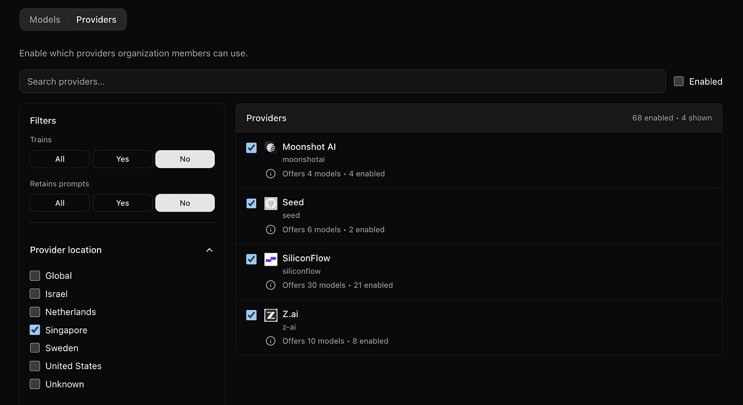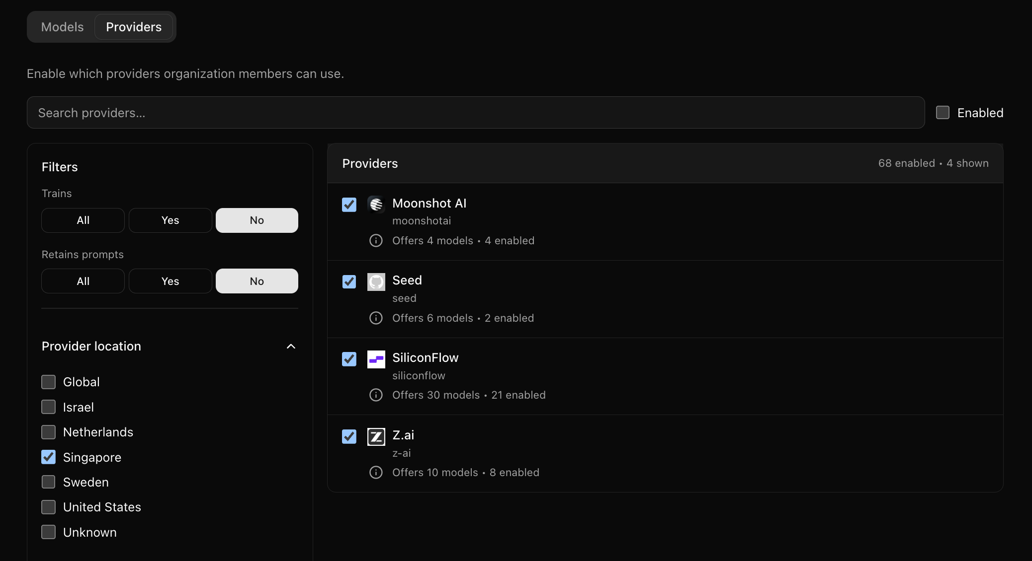 500+ Models on Demand: Through our integrations, you can connect to hundreds of different AI models instantly. You can check model and provider data policies from your Kilo admin dashboard.