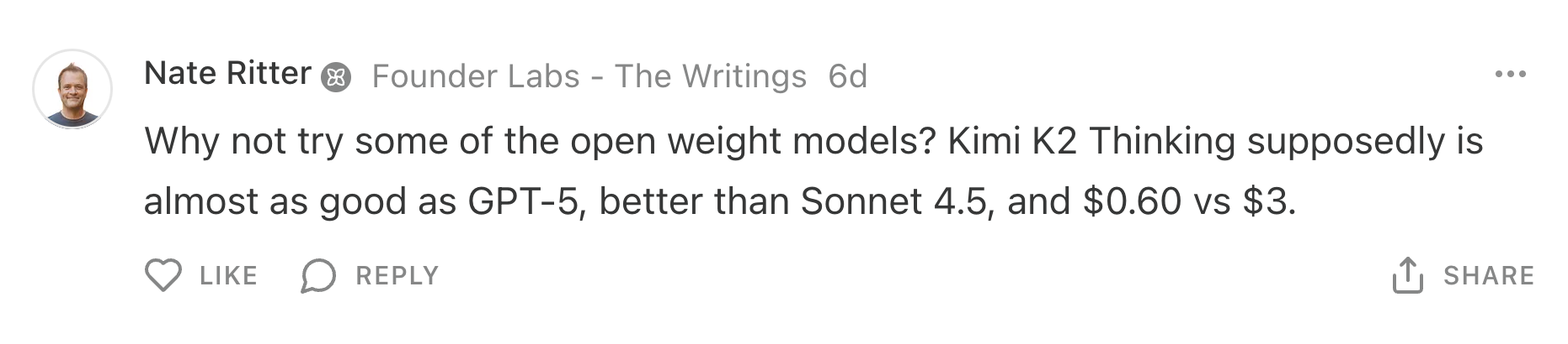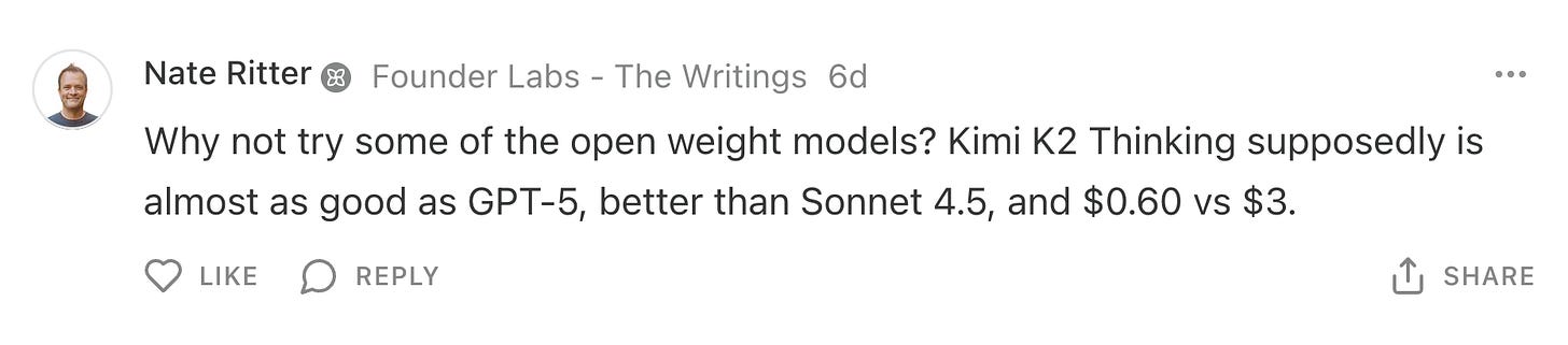 What would be really nice to see is the same sets of three test cases on the frontier AND budget models at once. You did this for the newest frontier ones recently and now this one. That would give us some real overall comparisons. Always looking for the correct balance of cost and quality. Thanks!