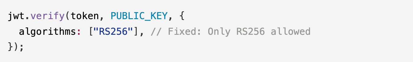 All three models restricted verification to RS256 and removed HS256 from the allowed algorithms.