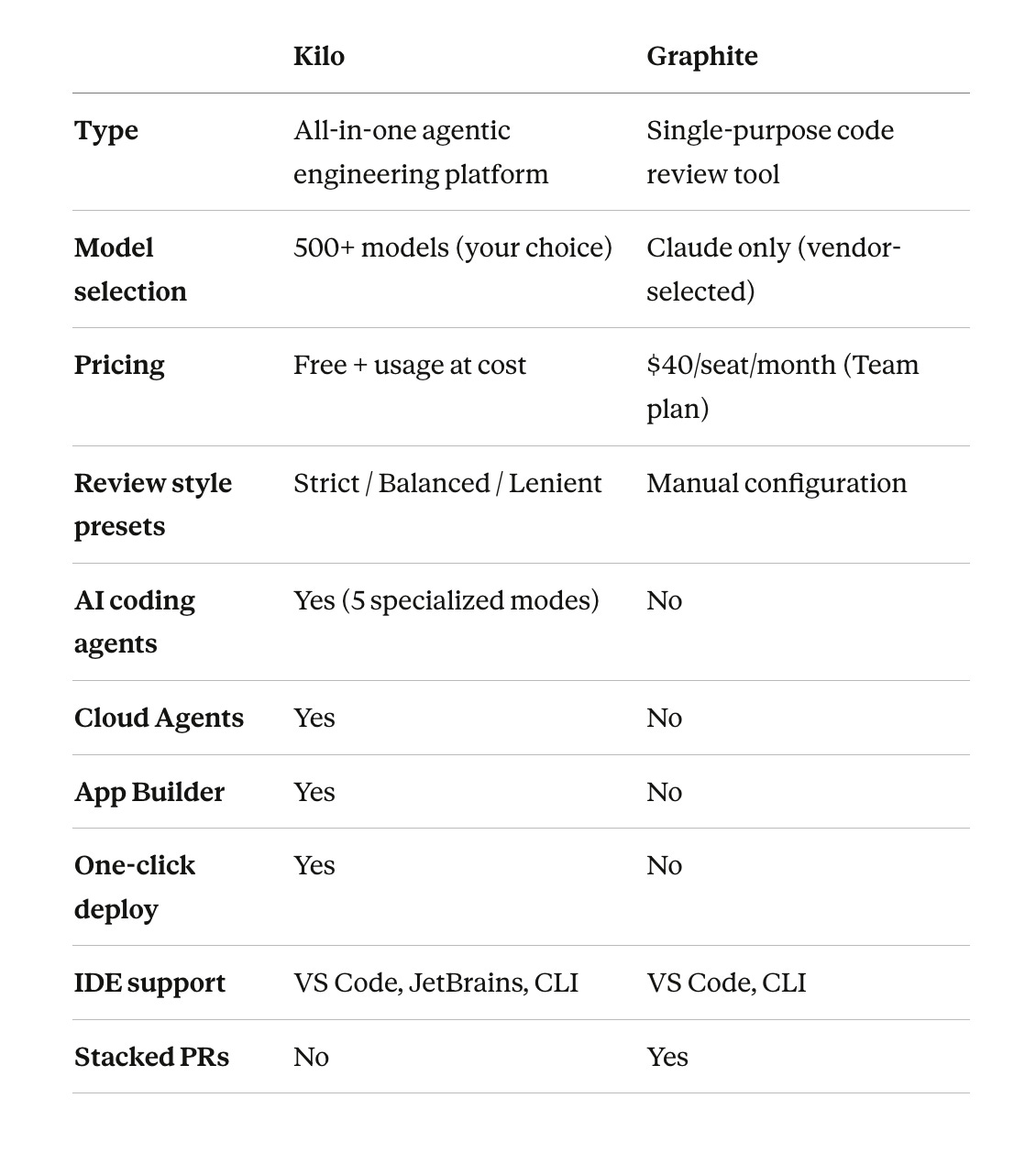 Kilo’s Code Reviews takes a different approach. It’s part of an open, all-in-one agentic engineering platform where you pick the model, you control your spend, and your reviews happen in the same ecosystem where you’re already writing and shipping code.