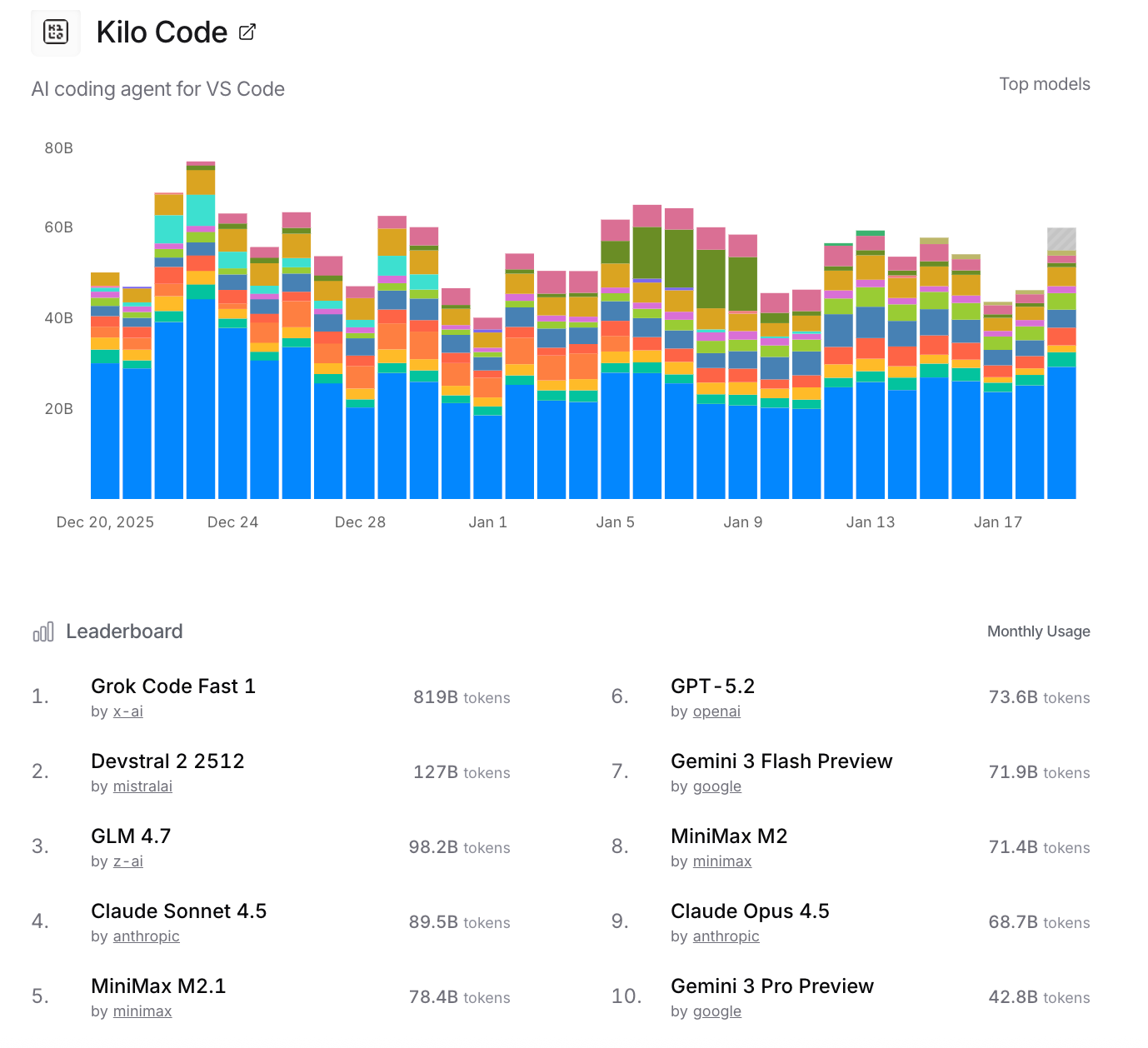 Kilo Code has been the largest “user” of Grok Code Fast 1 on OpenRouter.