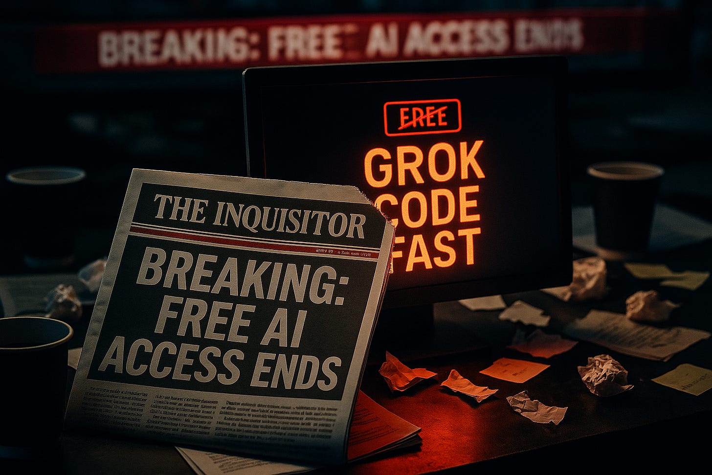 I chose option two. What if we covered the “crisis” of losing free Grok access like breaking news? What if we built our own Onion-style parody using Grok Code Fast, the very tool we’re losing?