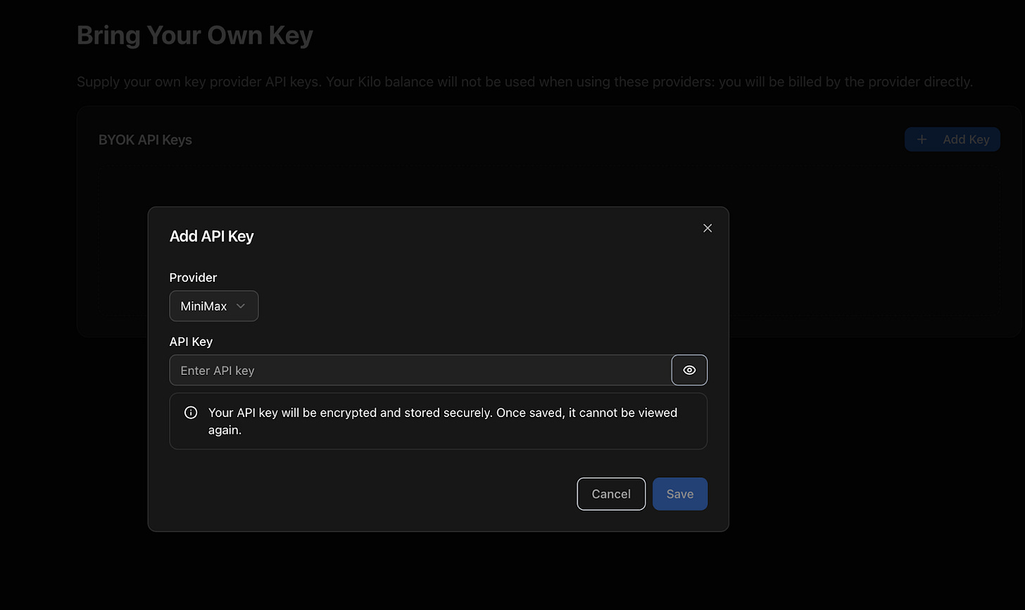 Go to Kilo’s BYOK page