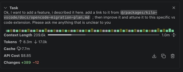 The centerpiece of Mark’s work is migrating the VS Code extension to the new Kilo harness. This is a great project for agentic engineering, because the goal isn’t to change what the extension does, but rather how it works underneath.