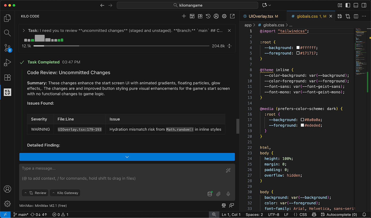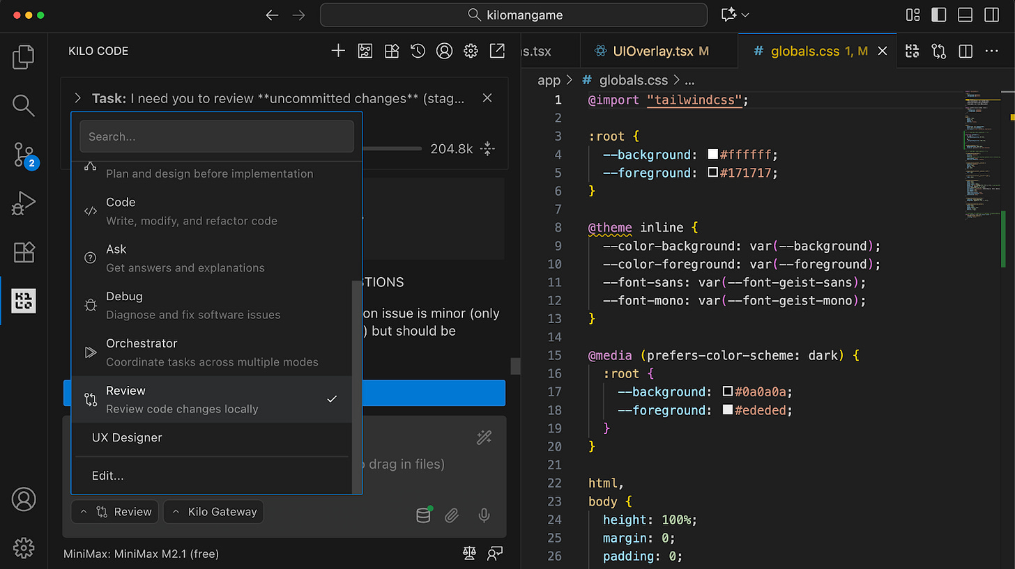 Review mode uses the same model selection you have everywhere else in Kilo. Quick refactor? Use something fast and cheap. Security-sensitive change? Bring in heavier reasoning. You pick the right tool for the job, same as you would for any other mode.