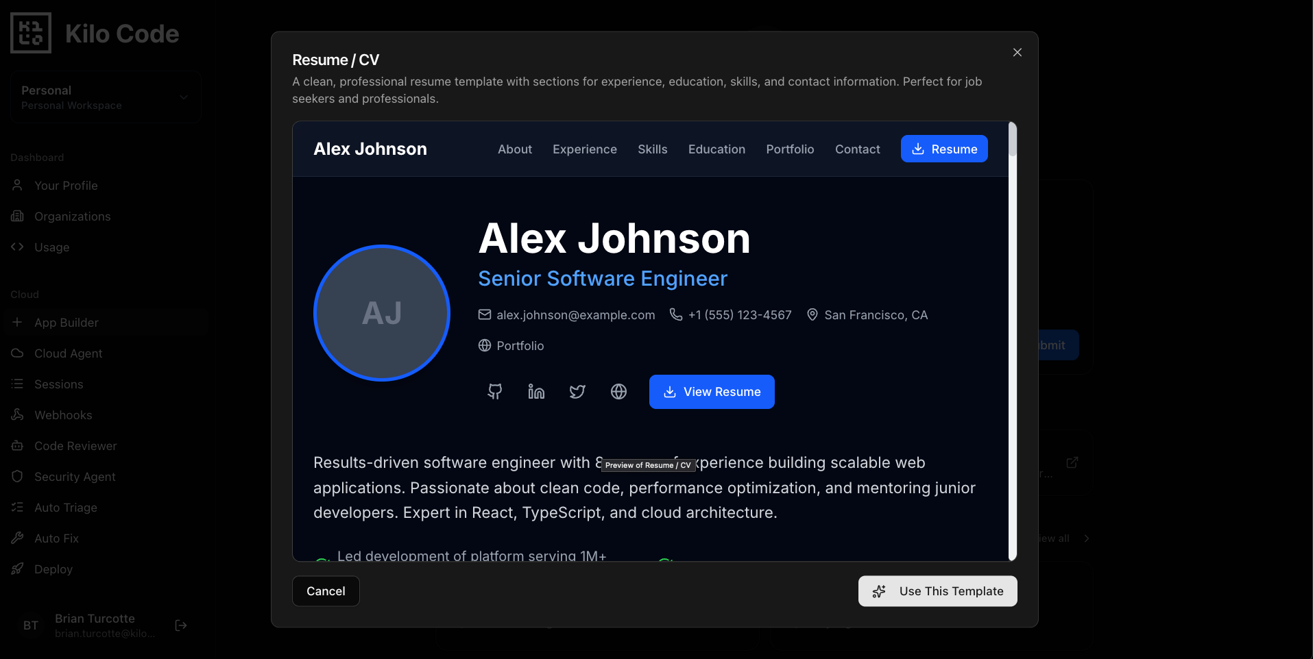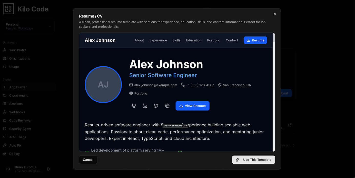 App Builder now includes two starter templates: a Resume/CV website, and a Startup Landing Page. Head to App Builder, pick a template, and personalize from there.