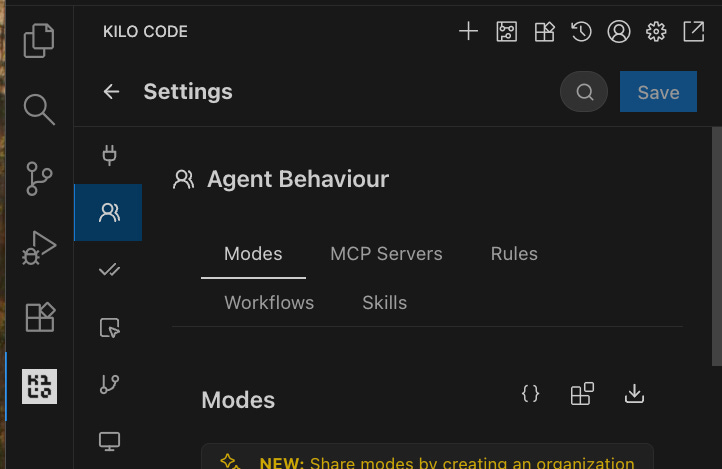 We’ve centralized Agent behavior settings by moving Mode, MCP, Rules, and Workflows configuration into the Agent Behavior area. A new Skills tab lets you view and manage installed skills, and you’ll see notifications when skills are added or removed from your project or global config.