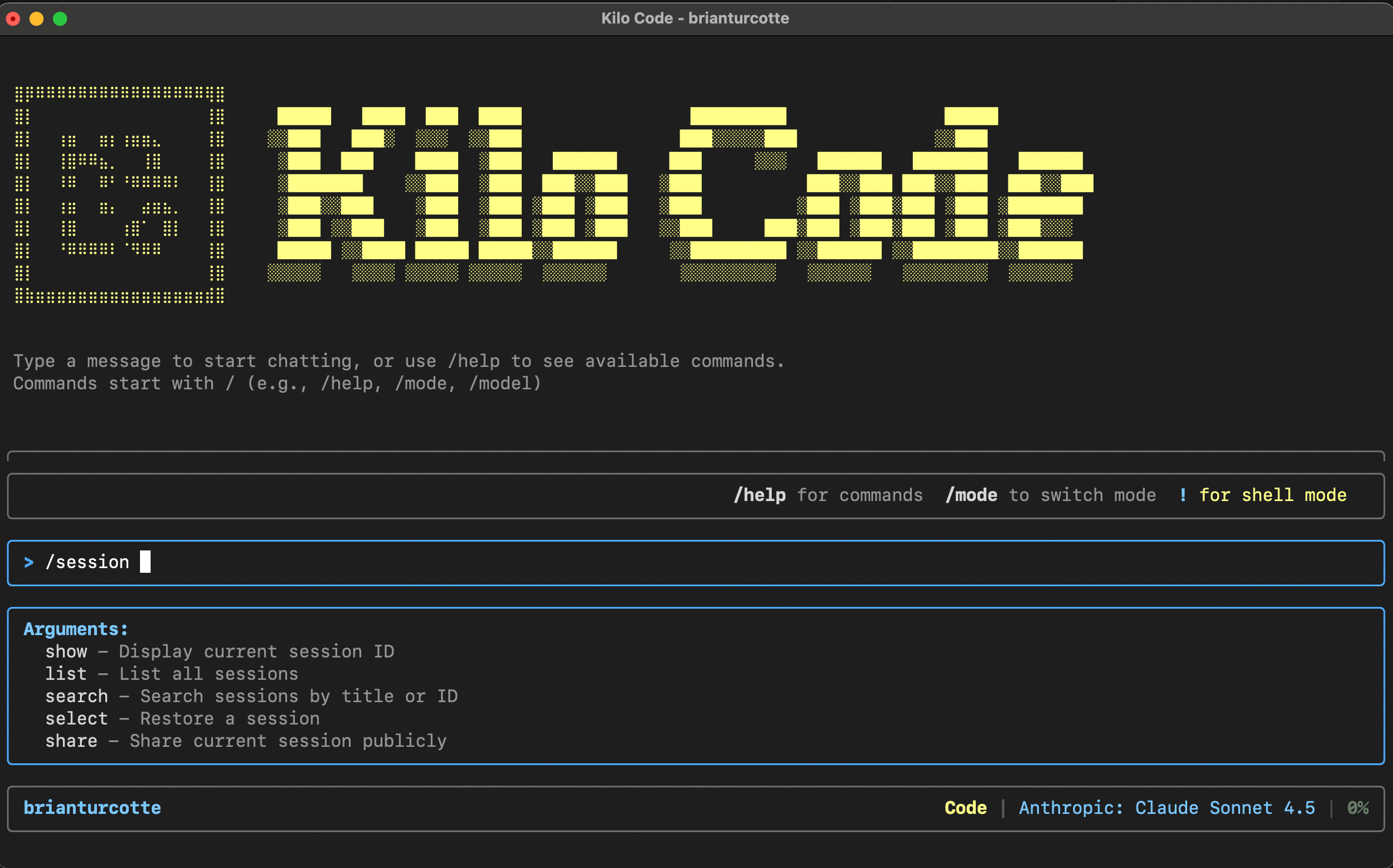 The CLI now supports sessions, allowing you to maintain conversation context across multiple chats. Use the /session command to show, list, search, select, and share sessions: