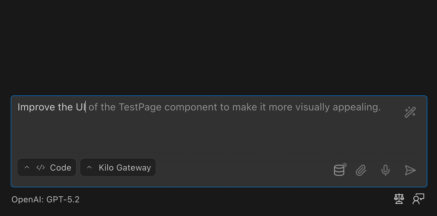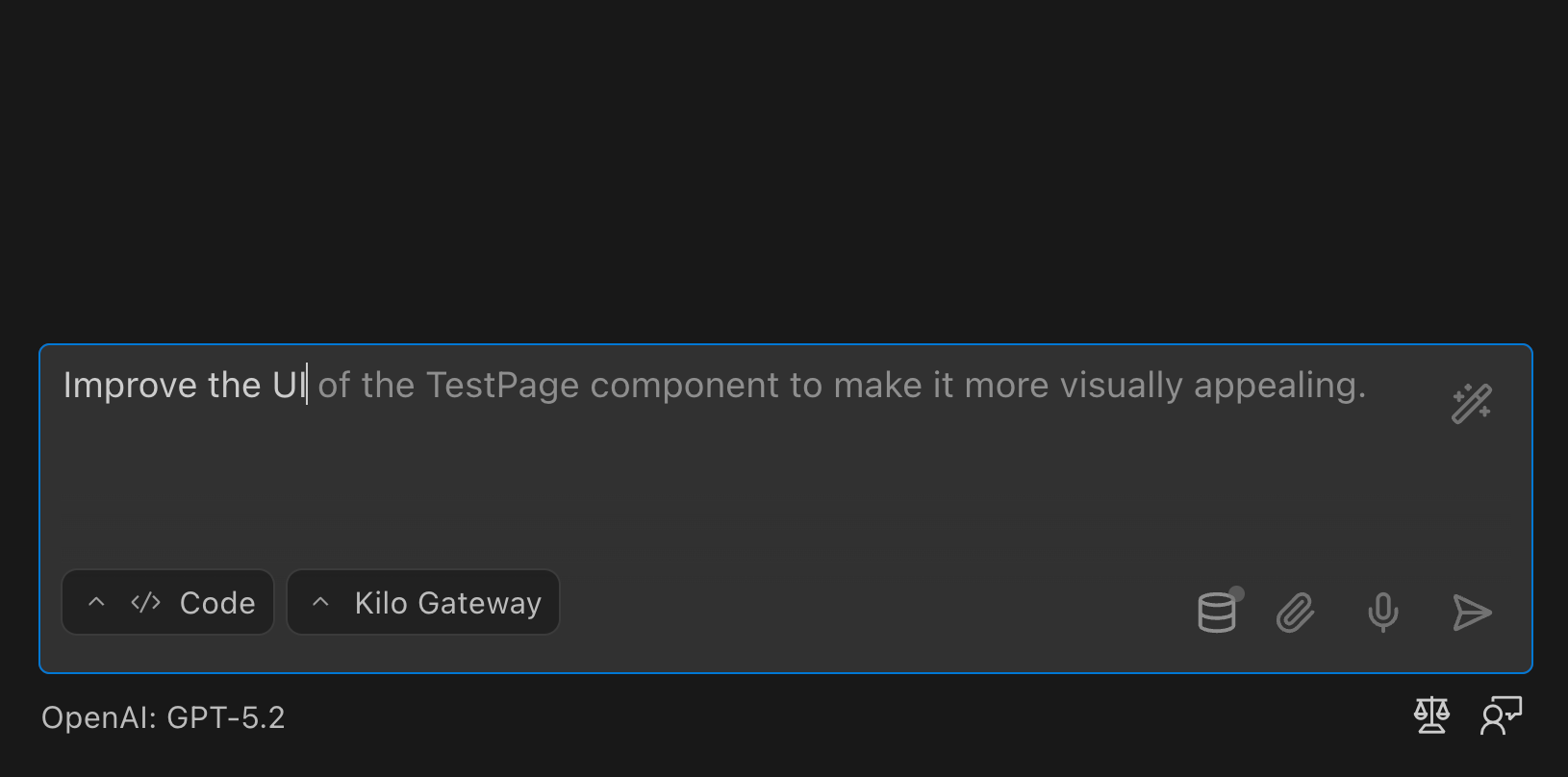 Chat autocomplete is now enabled by default, offering suggestions in ghost-text as you prompt Kilo