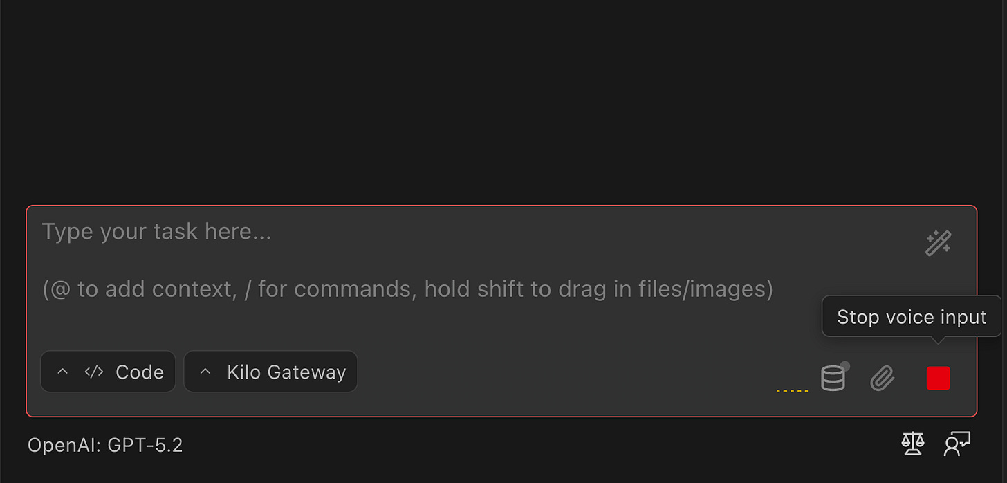 Getting started with speech-to-text is now smoother, with an inline setup tooltip that guides you through initial configuration right where you need it.