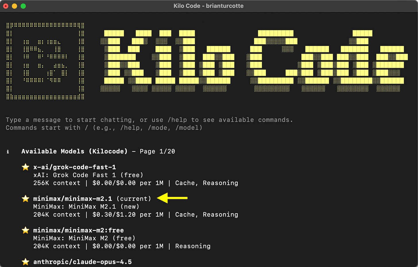 MiniMax continues their momentum with M2.1, now available in Kilo. Their previous model M2 was trending at #3 on our AI coding models leaderboard for Code mode, so we’re watching closely to see how M2.1 stacks up.