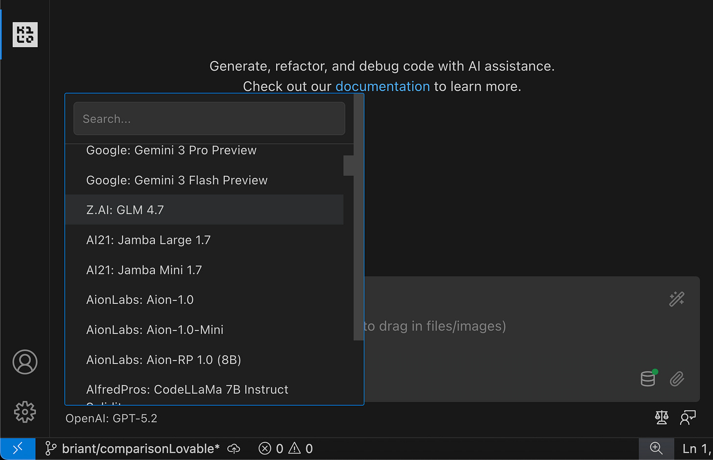 To try it, open Kilo, switch your model to Z.AI: GLM-4.7, and start building.