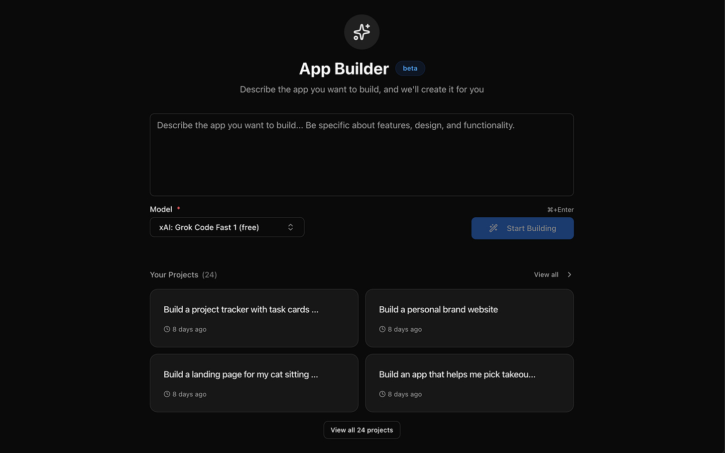 Admin Dashboard — New admin dashboard for managing App Builder projects and deployments.