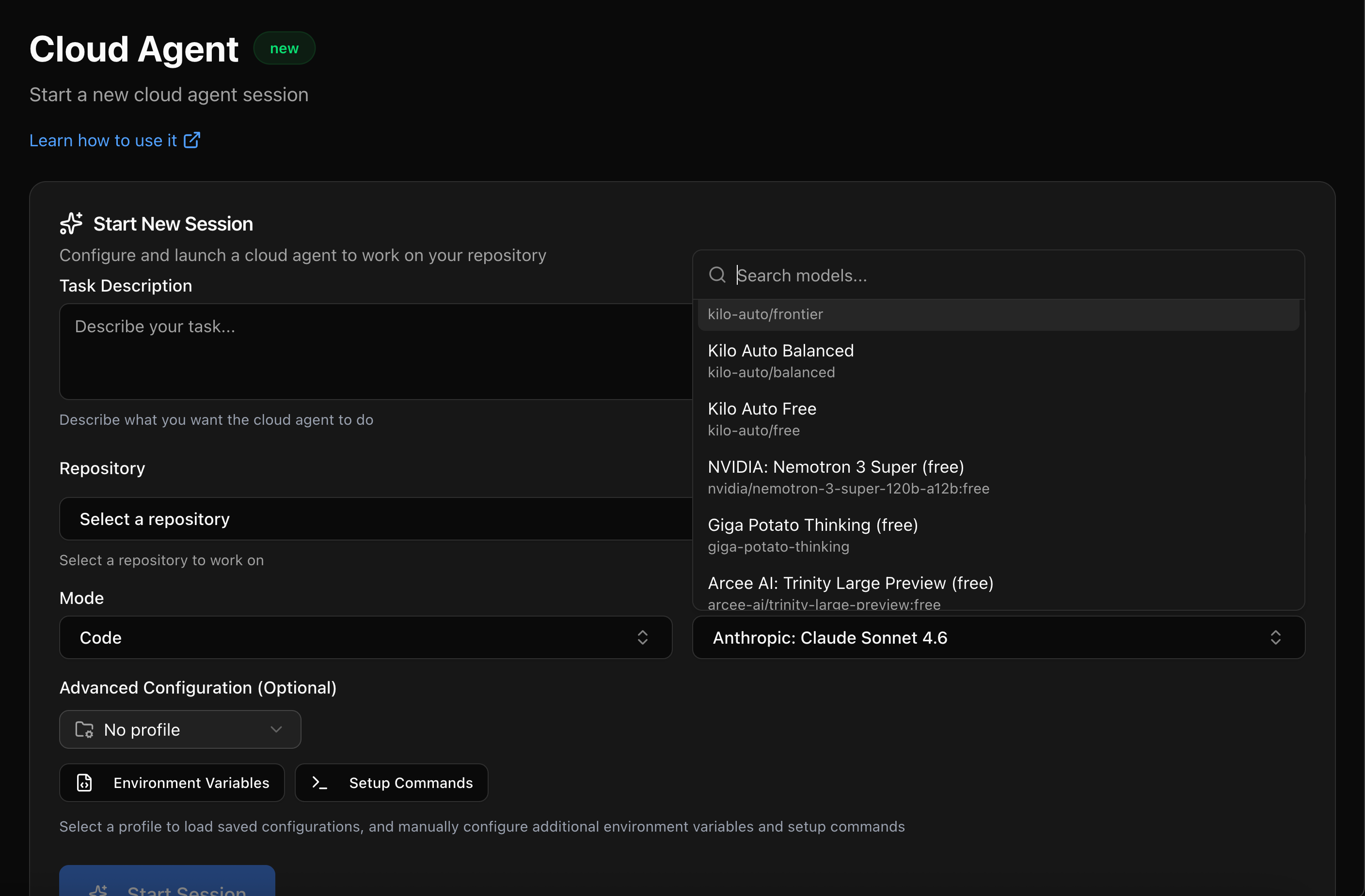 Default Model: Kilo Auto Balanced