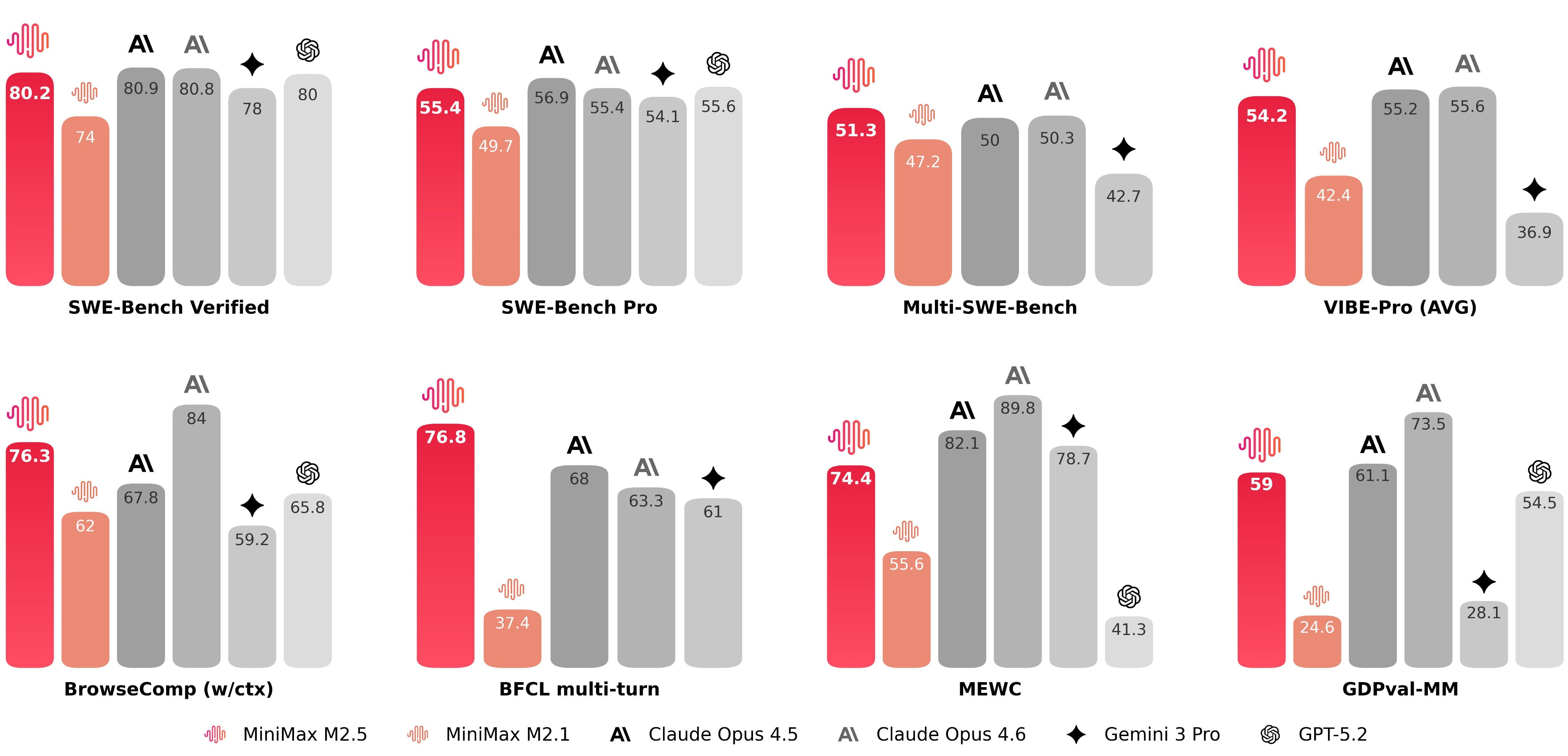 To put that in perspective, Claude Opus 4.6 averaged just below 80% across standard trials. While Anthropic noted that a specific prompt modification could push Opus 4.6 to 81.42% (and this fits with what we’re seeing with Opus in the wild), the fact that M2.5 sits comfortably at 80.2% out-of-the-box makes it a formidable powerhouse that rivals the best in the industry.