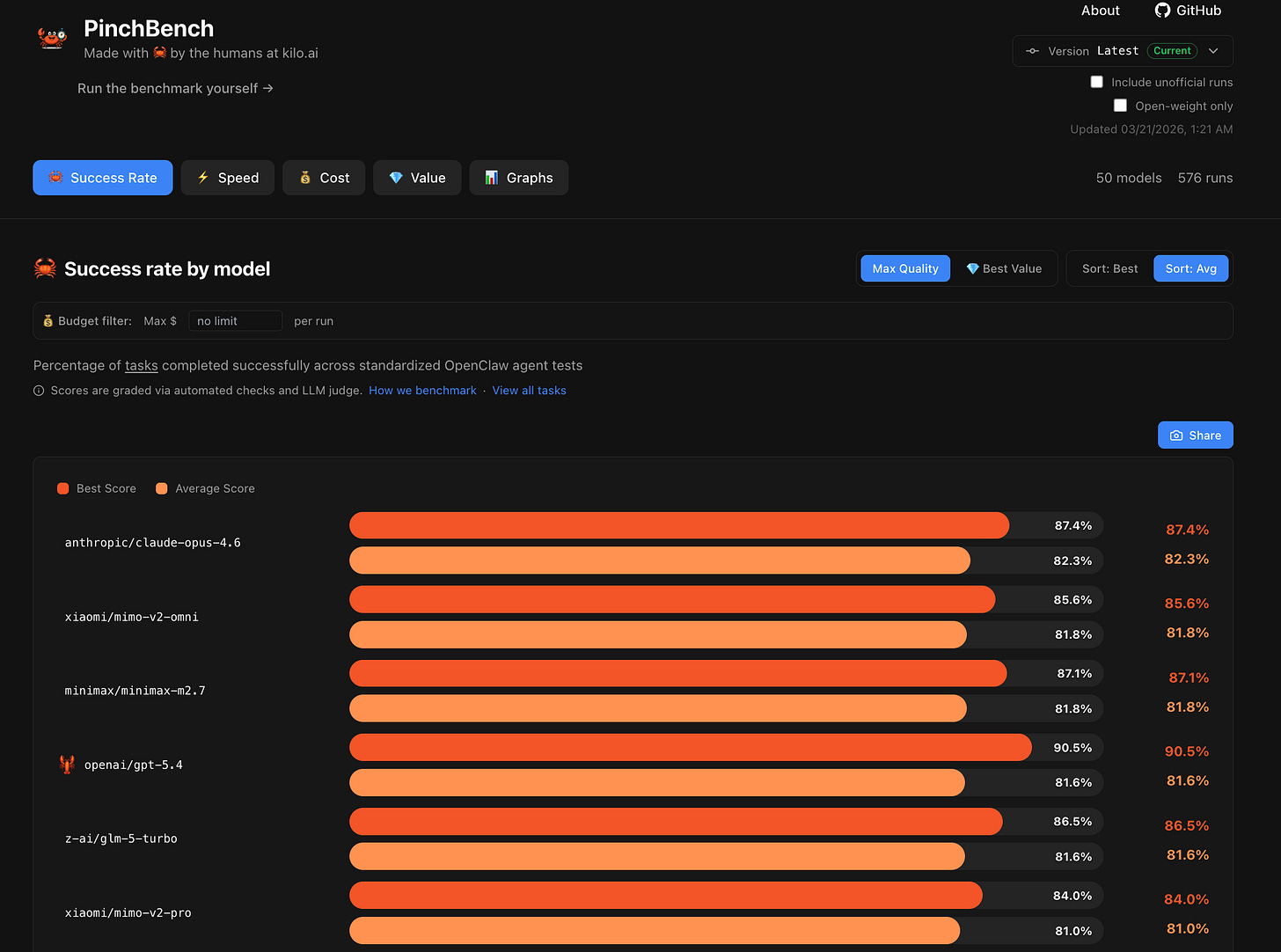 PinchBench started as a side project of Kilo DevRel mastermind Brendan O’Leary, who wanted to build a benchmarking system for evaluating LLM models as OpenClaw coding agents. The idea was simple: run tests based on real-world tasks to help users choose the right model for their use case. But my oh my, has that “side project” taken off!