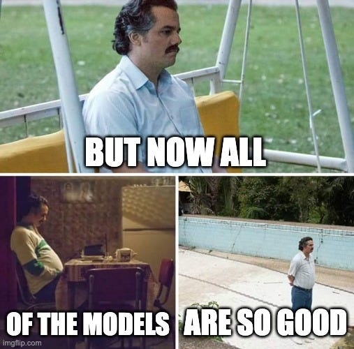 And unlike earlier this year where there was a lot of fast switching, a trend is emerging that users will continue to rely on a particular model for a particular type of task, then add on other models in other modes like layers on a cake.