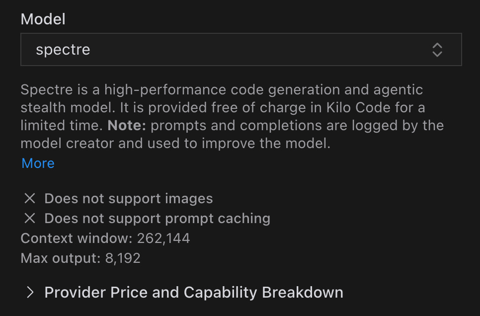 Background: Spectre is a new stealth model we announced on Monday. The model comes from one of the top 10 AI labs in the world.