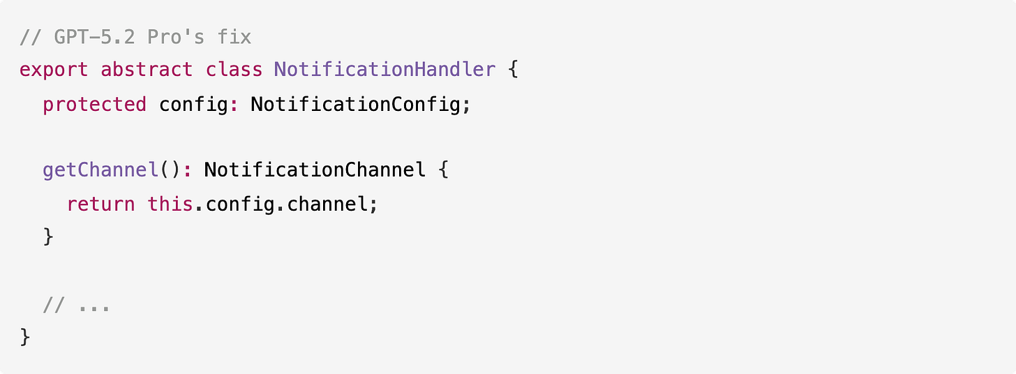 GPT-5.2 Pro was the first model to actually fix this. It added a getChannel() method to the base class:
